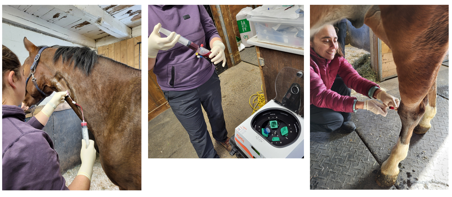 Ce procédé utilise le propre sang du cheval, transformé en une solution riche en protéines anti-inflammatoires et régénératives, puis réinjecté directement dans l’articulation ou la zone affectée. Ce traitement contribue à réduire l’inflammation, diminuer la douleur et favoriser la guérison chez les chevaux atteints d’arthrose, de synovite ou de certaines blessures aux tissus mous.